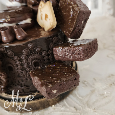土台のケーキには、チョコレートカラーに染めたケミカルレースをあしらいました。