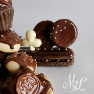 チョコレートをふんだんに使ったドーナツ、エクレア、マカロン、カップケーキ