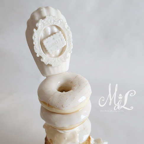 クリームやホイップなどの白と焼き菓子の焼き色、ゴールドラメのキラキラ感の