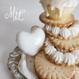 シンプルなクリームサンドクッキーを重ねて白いお菓子たちを盛りつけた