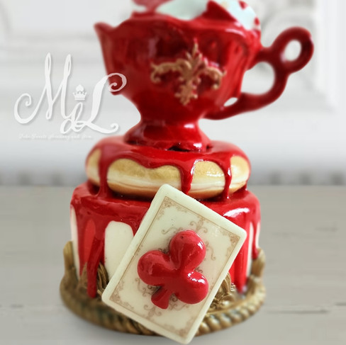 大きなハートクッキー、トランプクッキー、真っ赤なカップケーキ、マカロンなど