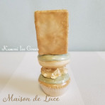 ドット柄のマカロンにホイップ、更にマカロンを重ねて、キャンディの宝石を飾りました。