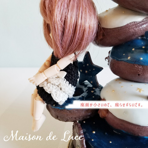 かろうじてチョコンと座れますが、ドール様のウィッグやお召し物によっては落ちてしまうかもしれません…