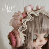 ふんわりフリフリのレースリボンや刺繡リボンにマカロン、スノーボールクッキーなどのお菓子を合わせたブライス様用ヘッドドレスと