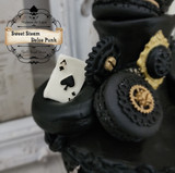 マカロンやトランプ、歯車などで飾り立てた大きめのハットを乗せた