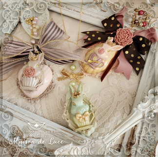 マドレーヌと大人王冠うさぎさんのネックレスとバッグチャーム