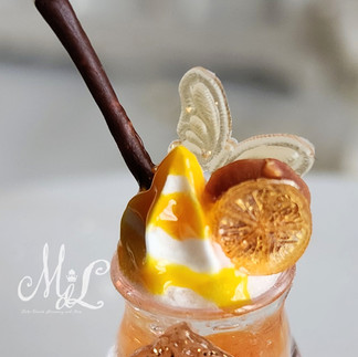 ゴールドラメソースを掛けたぷるんぷるん(しません)オレンジゼリーです。