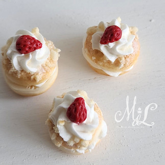 苺をちょこんと乗せた素朴感漂う小さなブリオッシュケーキたちです。