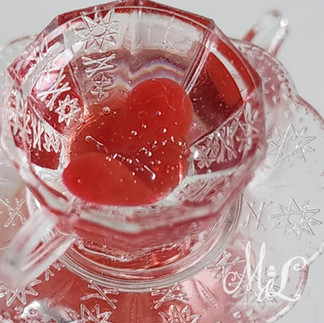 ぽちゃんぽちゃんと丸ごと苺をそのまま浸した気泡たっぷりのシロップティーのティーポットカップです。