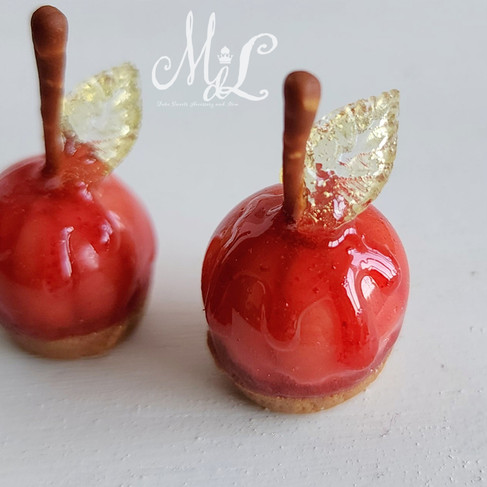りんごやどこれ採れるか分からない赤い実を使った小さなお菓子たちです。