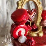 Maison de Luceでは、真っ赤な2段ケーキにゴールドのフレームを飾った