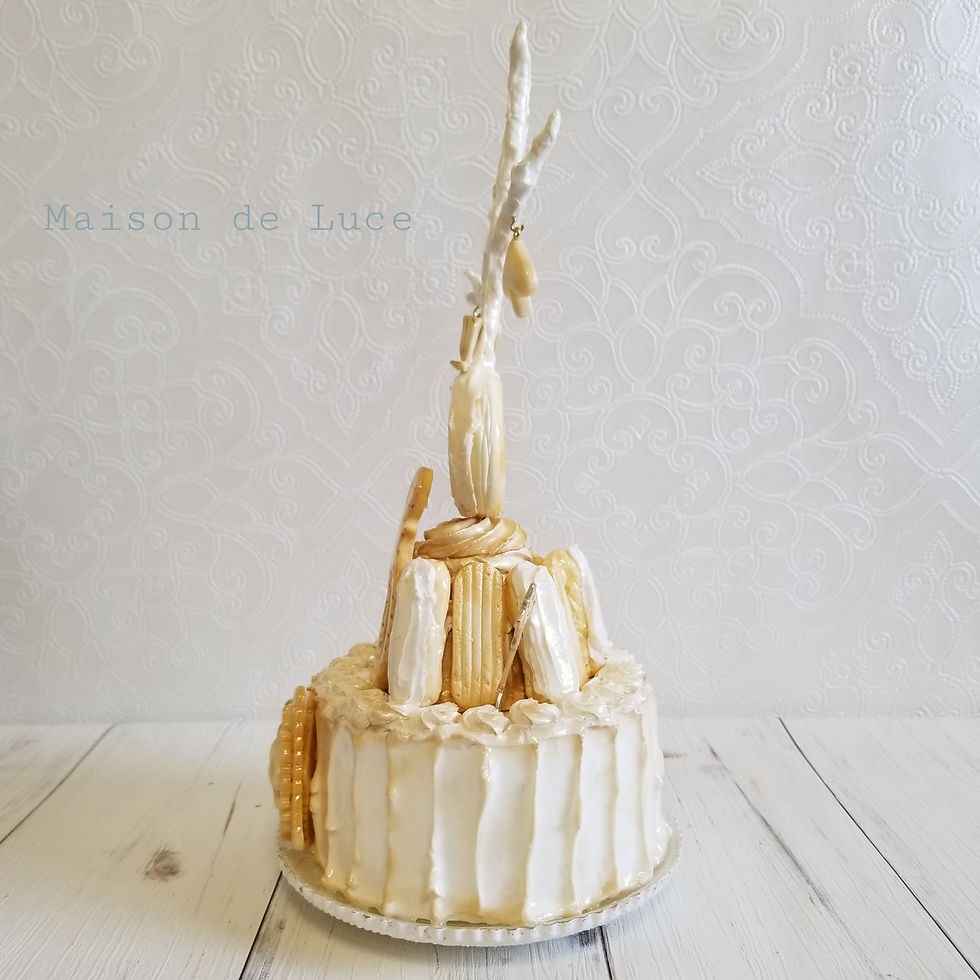 メレンゲたっぷりのお菓子たちにはパールゴールドを散りばめてシャビー感を出しています。