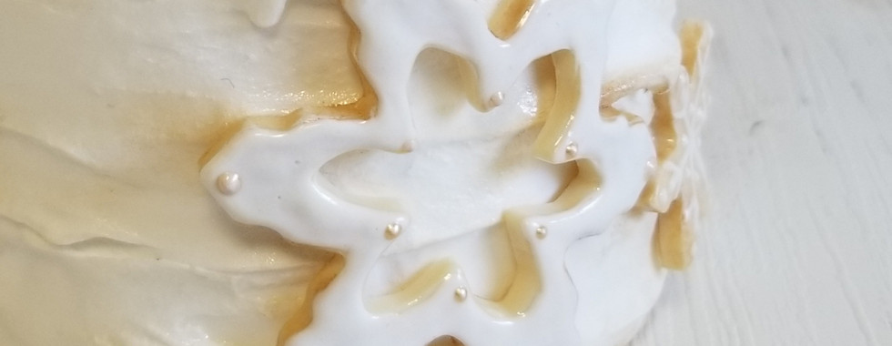 塗りの粗いメレンゲケーキの周りには雪の結晶のアイシングクッキーを散りばめました。