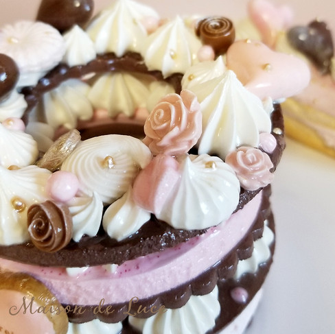 リング状のココアクッキー・苺ムース・ホイップを3段重ねたバレンタインケーキと